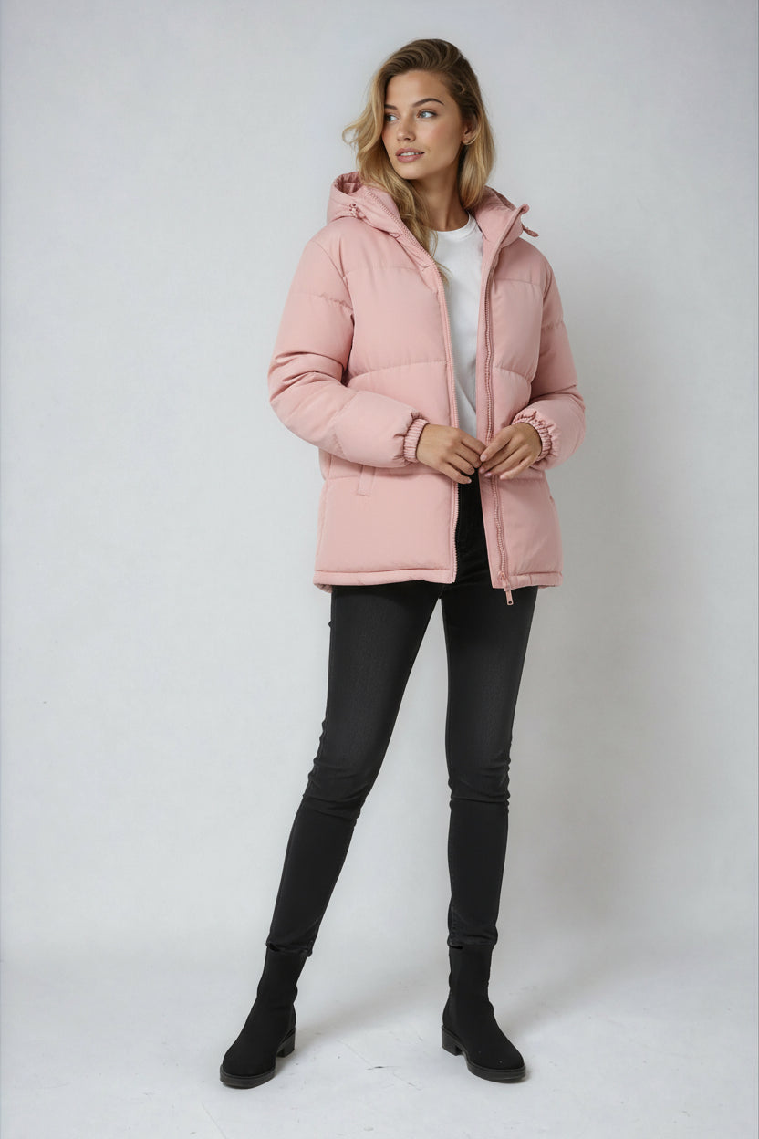 Ta kurtka zimowa dla kobiet zapewnia ciepło, lekkość i swobodę ruchu, idealną na chłodne dni. Pikowana konstrukcja i kaptur skutecznie chronią przed zimnem i wiatrem, zachowując przy tym nowoczesny wygląd. Zamek na całej długości ułatwia zakładanie, a elastyczne wykończenia gwarantują dopasowanie. To ponadczasowy wybór do miejskich i codziennych stylizacji.