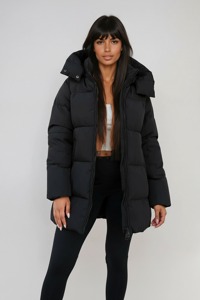 Długa Kurtka Zimowa Damska Pikowana | Ciepły Płaszcz na Zimę z Kapturem