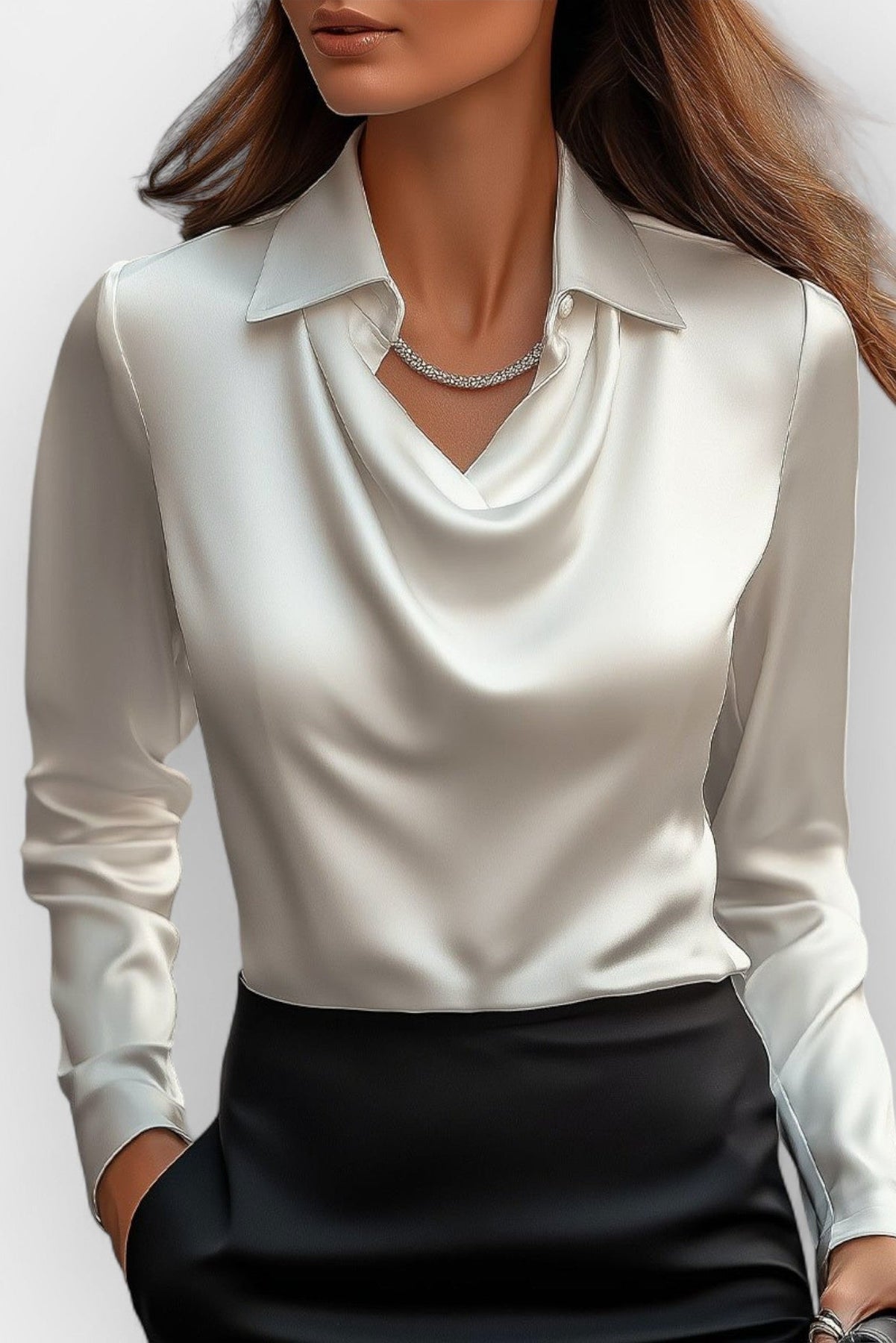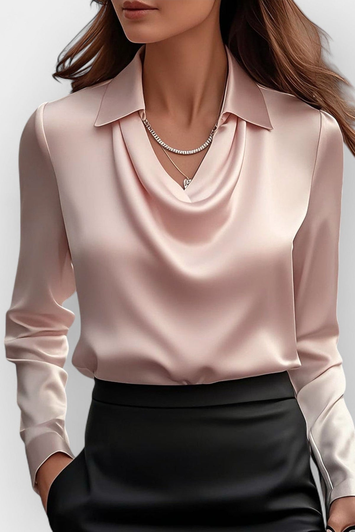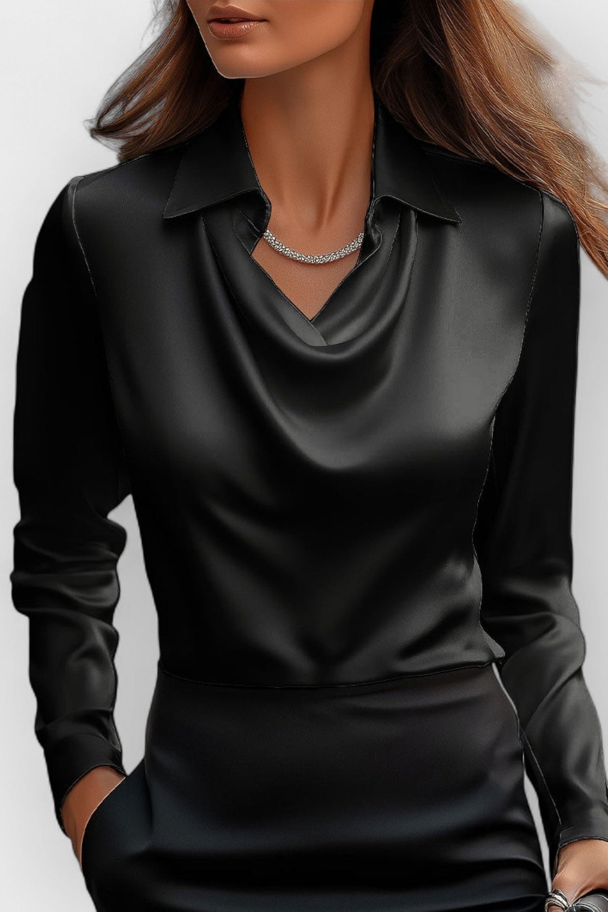 Ta bluzka biurowa damska to połączenie nowoczesnego kroju z subtelną kobiecością. Delikatnie układający się dekolt oraz dopracowany kołnierz tworzą efekt ponadczasowej elegancji, idealnej zarówno do pracy, jak i na formalne wyjścia. Miękka tkanina oraz dopasowany fason sprawiają, że model podkreśla sylwetkę i zapewnia komfort przez cały dzień. Ten top damski doskonale wpisuje się w codzienne i biurowe stylizacje.