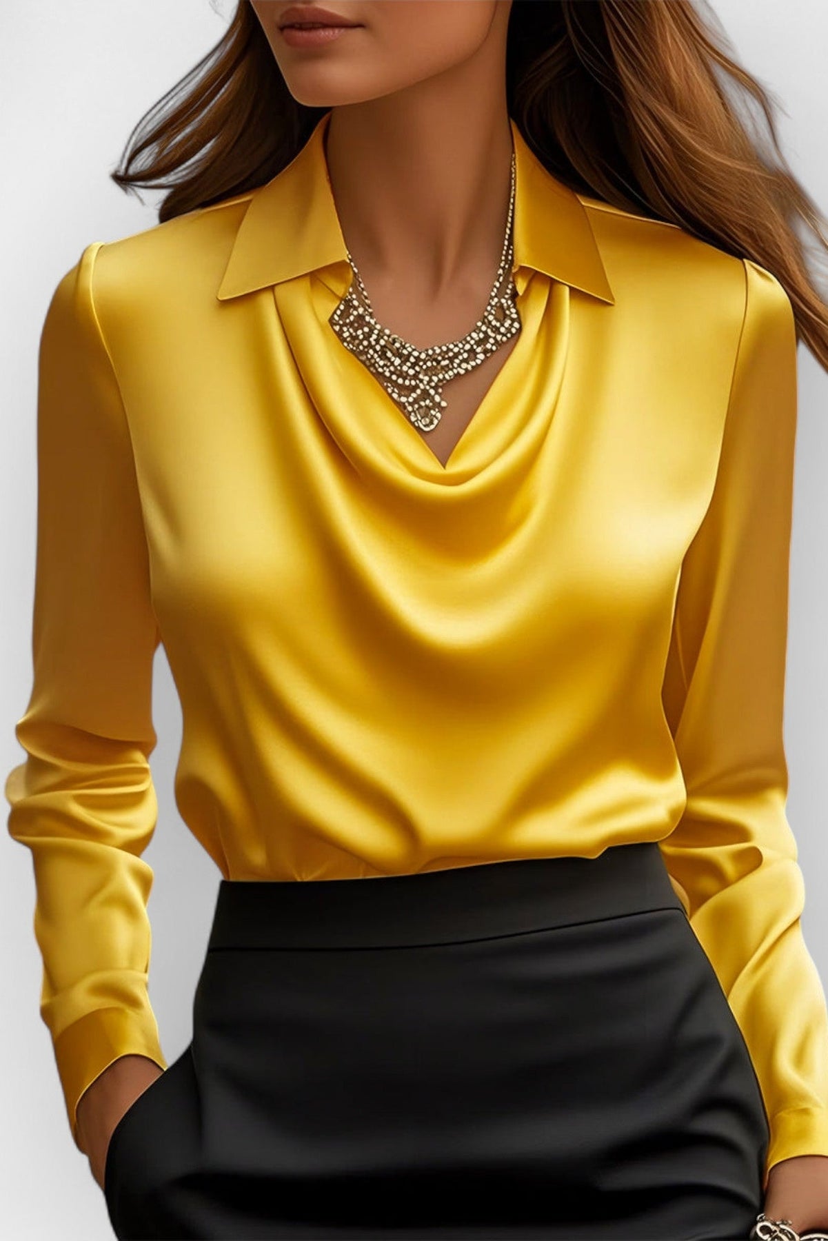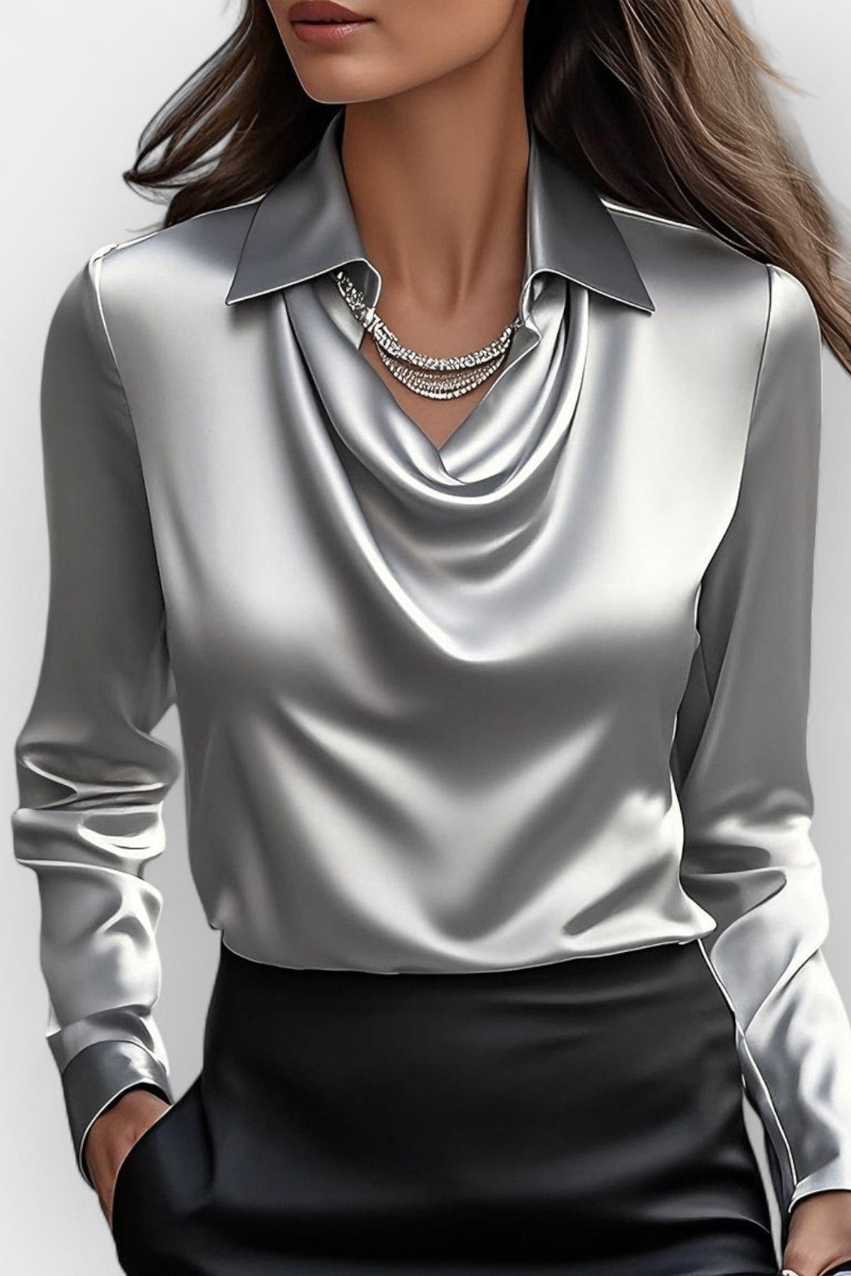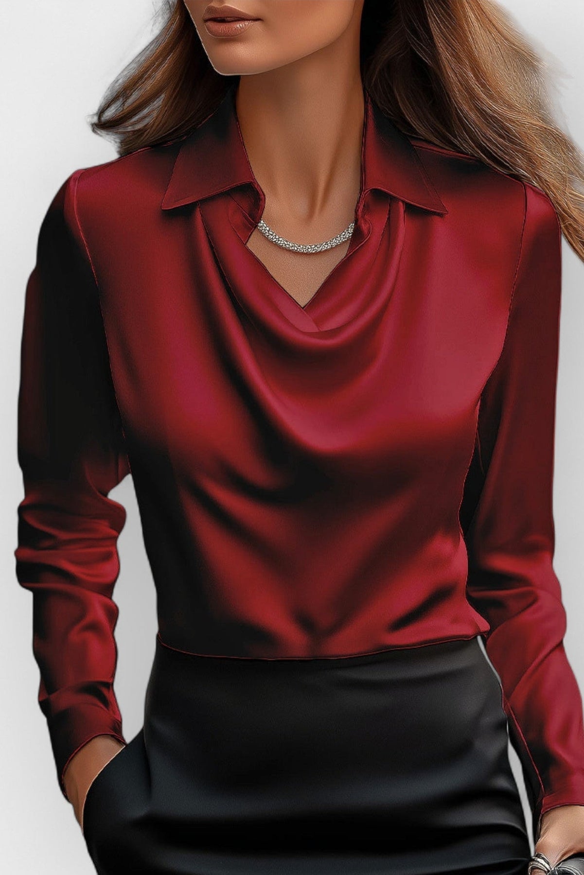 Ta bluzka biurowa damska to połączenie nowoczesnego kroju z subtelną kobiecością. Delikatnie układający się dekolt oraz dopracowany kołnierz tworzą efekt ponadczasowej elegancji, idealnej zarówno do pracy, jak i na formalne wyjścia. Miękka tkanina oraz dopasowany fason sprawiają, że model podkreśla sylwetkę i zapewnia komfort przez cały dzień. Ten top damski doskonale wpisuje się w codzienne i biurowe stylizacje.