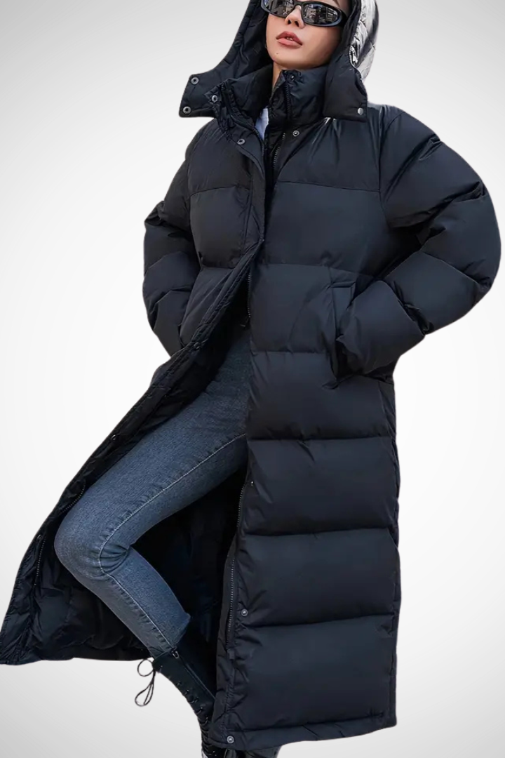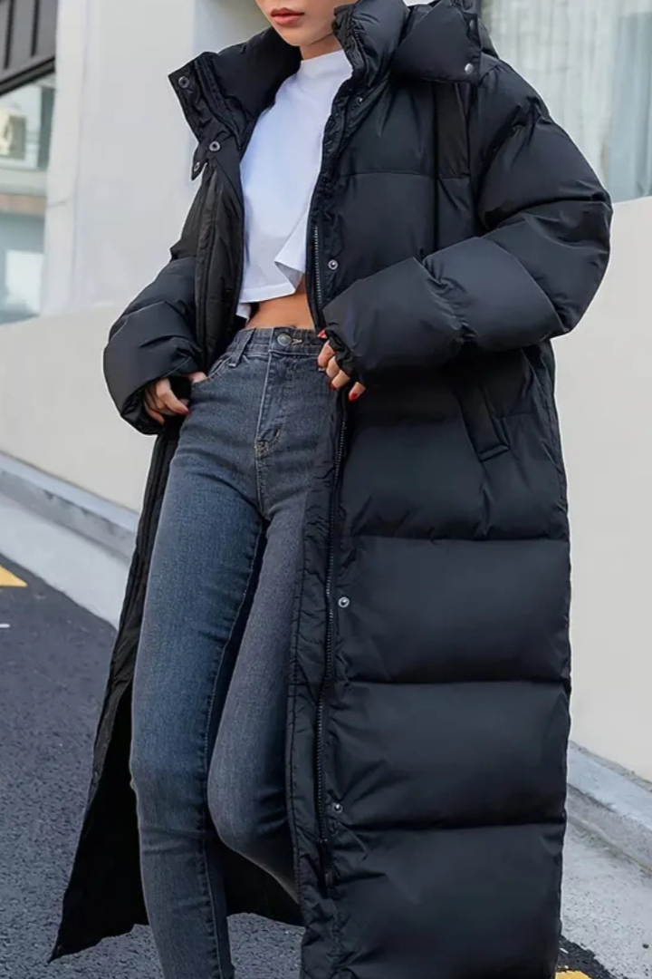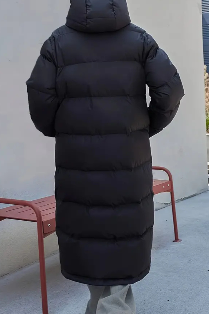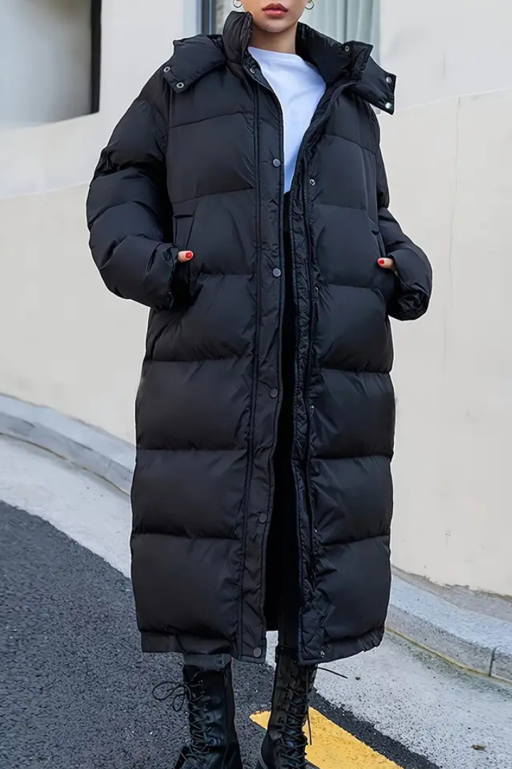 Długa Kurtka Zimowa Damska Pikowana z Kapturem – Ciepły Płaszcz na Zimę